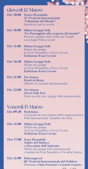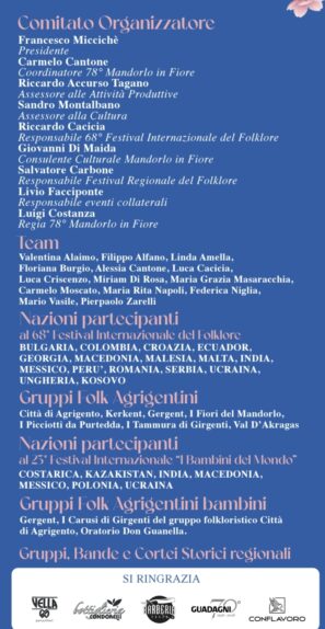 78° Mandorlo in Fiore, 68° Festival Internazionale del Folklore, 23° Festival Internazionale “I Bambini del Mondo”, AGRIGENTO 7 -15 MARZO 2026