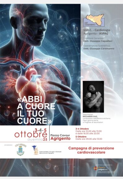 “Abbi a cuore il tuo cuore”, che si svolgerà dal 3 al 5 ottobre prossimo in piazza Cavour ad Agrigento, avrà un testimonial d’eccezione: Riccardo Gaz, conduttore radiofonico che ogni giorno parla a migliaia di ascoltatori.