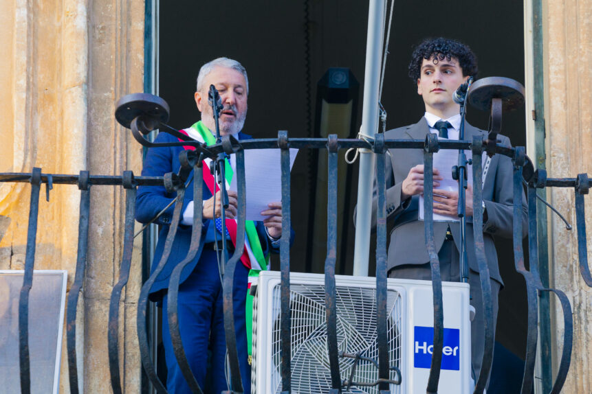 Come da tradizione, il sindaco Francesco Miccichè ha salutato i gruppi folkloristici innanzi al Municipio, sottolineando il valore simbolico di pace e fratellanza tra i popoli caratteristico della manifestazione, associandola, come significato, all’accensione del Tripode mercoledì scorso nella Valle dei Templi.