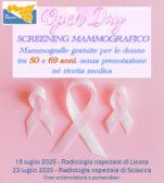 16 Luglio 2025Ancora due giornate di screening mammografico gratuito all’ASP di Agrigento. Il 18 luglio a Licata ed il 23 a Sciacca