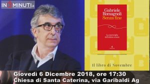 “SENZA FINE – LA MERAVIGLIA DELL’ULTIMO AMORE”. Lo scrittore Gabriele Romagnoli presenterà il suo libro giovedì 6 dicembre alle 17,30 nella Chiesa di Santa Caterina in via Garibaldi ad Agrigento. Converseranno con l’autore Monica Brancato co-organizzatrice #BUK ed i #buklovers. Coordinerà l’incontro Alessandro Accurso Tagano. #TerzoIncontro.